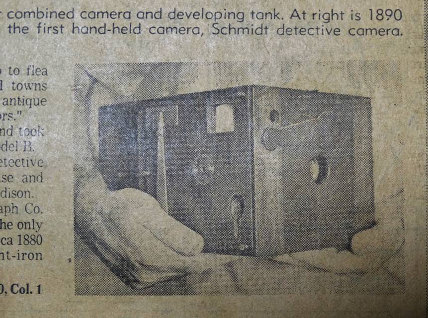 a tripod mount (see photo enlargement from the newspaper article, further down