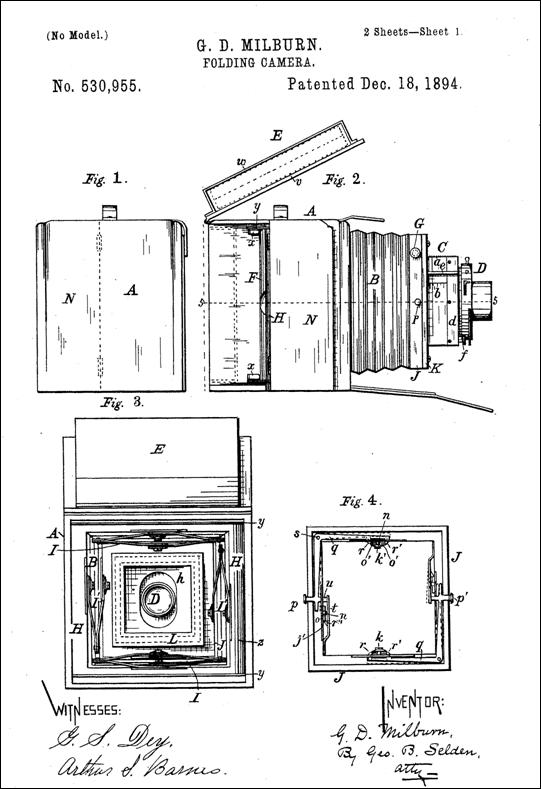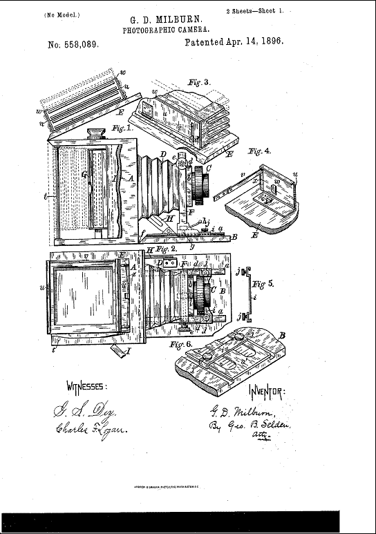 Milburn's first patent was noted in The Photographic Times, Volume XXVI for February,1895. The