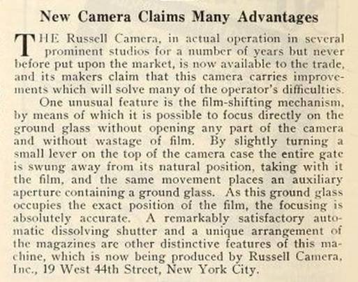 on the Russell Camera titled "New Camera Claims Many Advantages":