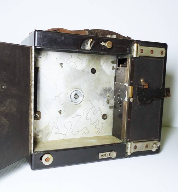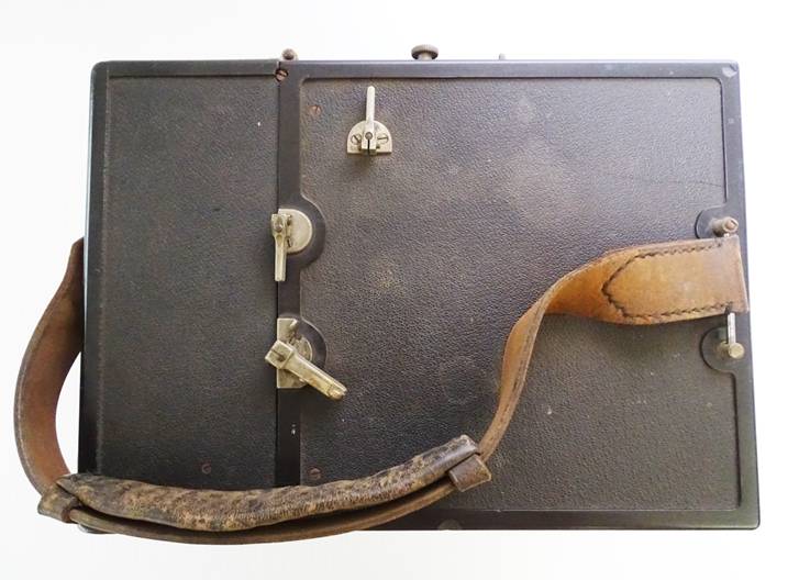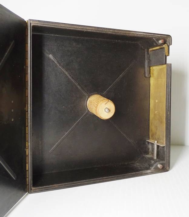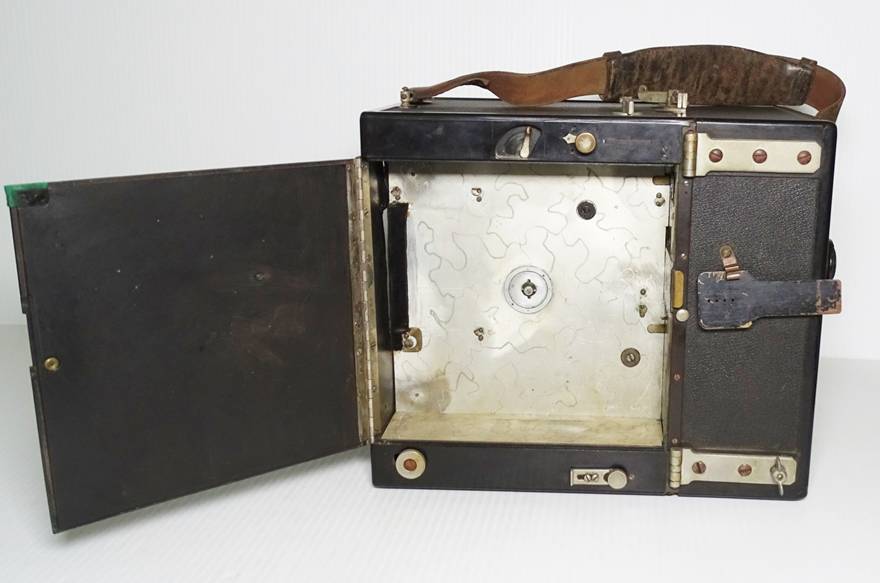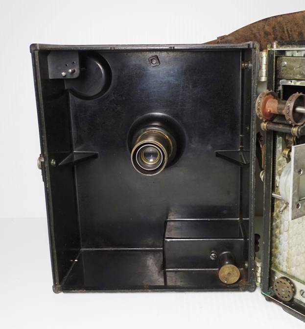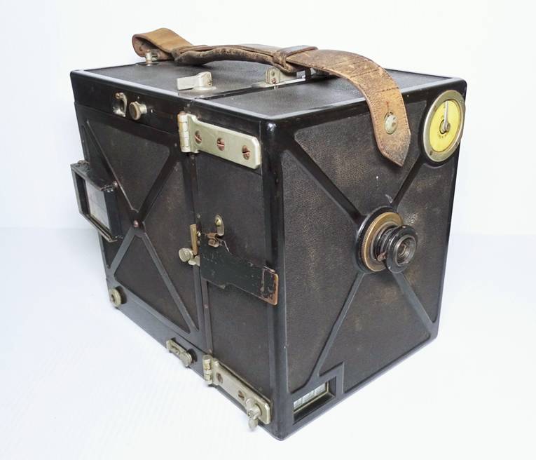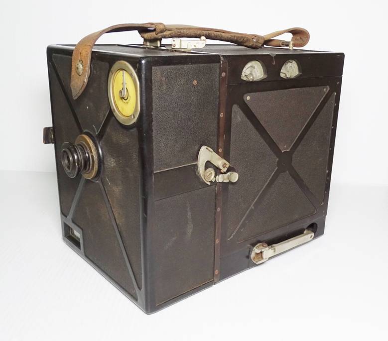 a unique outer case and film magazines constructed of Condensite. Condensite was a phenolic resin developed by
