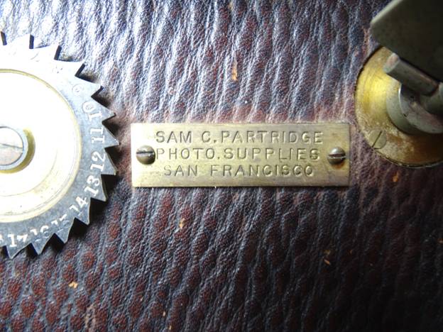 engraved "Sam C. Partridge Photo Supplies, San Francisco". Other than
